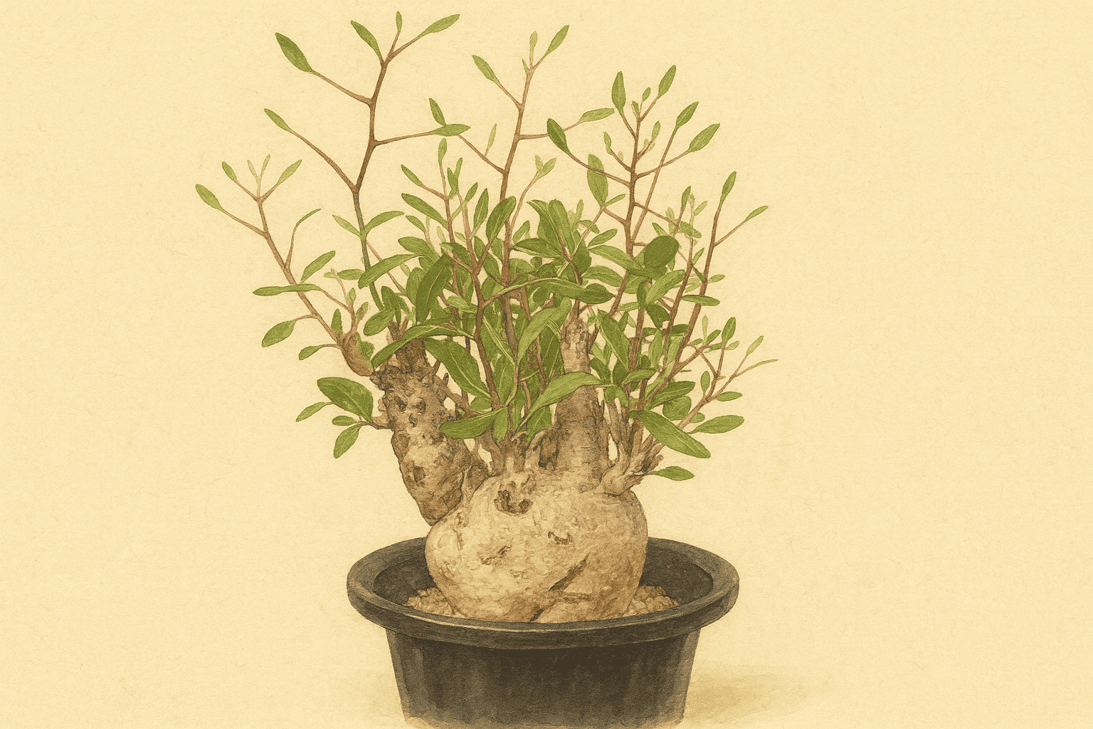 春〜初夏に一気に動く性質があり、根が動き出したら切らさない施肥が有効です。開始は25〜50 ppm Nで慎重に立ち上げ、葉がよく回る段階で50〜75 ppm Nへ。窒素過多は枝葉偏重を招き、塊根の太りが鈍ることがあるため、カリ・カルシウム・マグネシウムのバランスを崩さないよう気を配ります。🪵