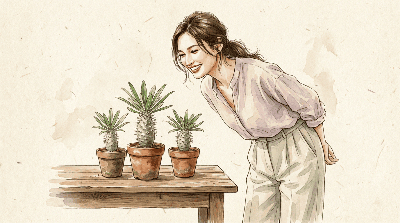 パキポディウム・グラキリスの実生は、1年目を無事に乗り切ると、見た目には急に安心感が出てきます。塊根が少しふくらみ、枝も伸び始めるため、多くの栽培者は「ここからは放っておいても太るだろう」と感じます。しかし、生理的にはむしろここからが本番であり、実生2〜4年目にどのような環境を与えるかによって、その株が今後10年以上どのようなシルエットで育っていくかが決まります。